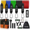 - Portable: It comes with 5 resistance bands, 2 hand grips, 2 ankle straps, 1 door anchor, a carry bag, and a user manual. You can keep fit anywhere without the limitations of a gym or exercise equipment!