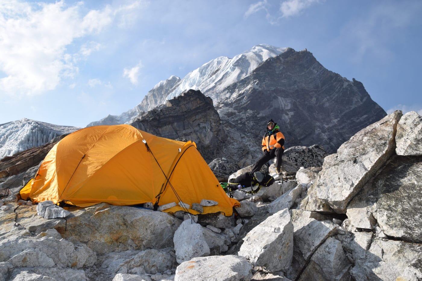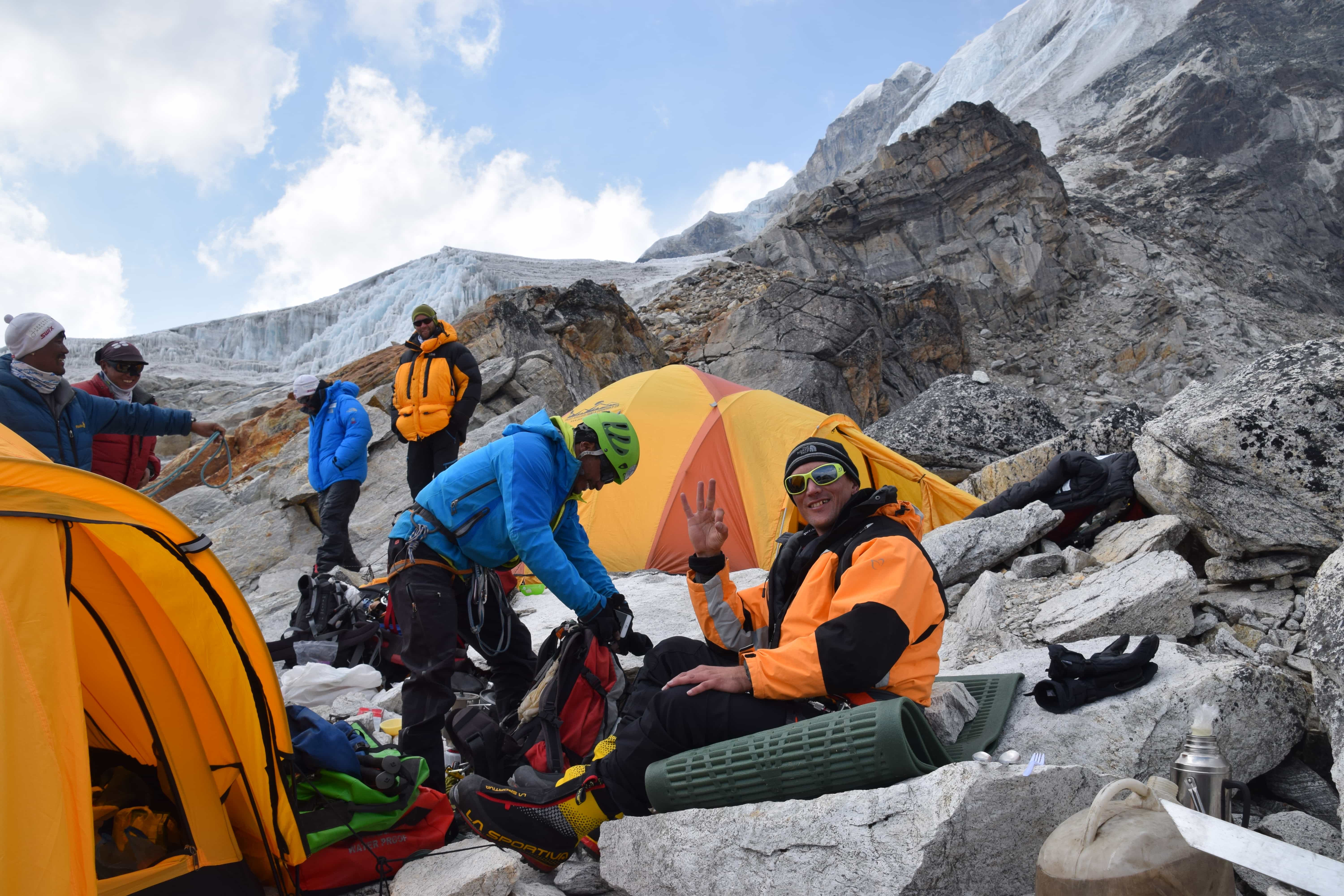 During the climb to the high camp, you can also choose between rock climb with the assistance of fixed rope or to bypass in a bit longer route. It really depends on your acclimatization. If you have enough breathing or you feel exhausted and prefer the walk. The high camp is just minutes from the snow starting point, still on the rocky part and the location is just beautiful.