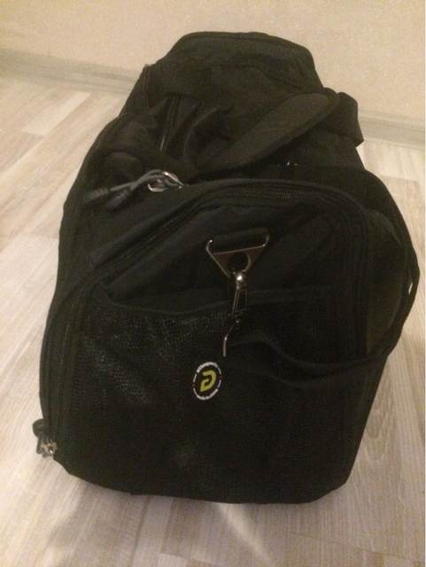 Всё точно по описанию. Прикол в том, что сумка смотрится в руках небольшой (скажем, меньше чем предыдущая моя), но по длине она даже немного больше. Сделана аккуратно, водонепроницаемые карманы и пр. и пр. Доставили в Москву достаточно быстро. Рекомендую.