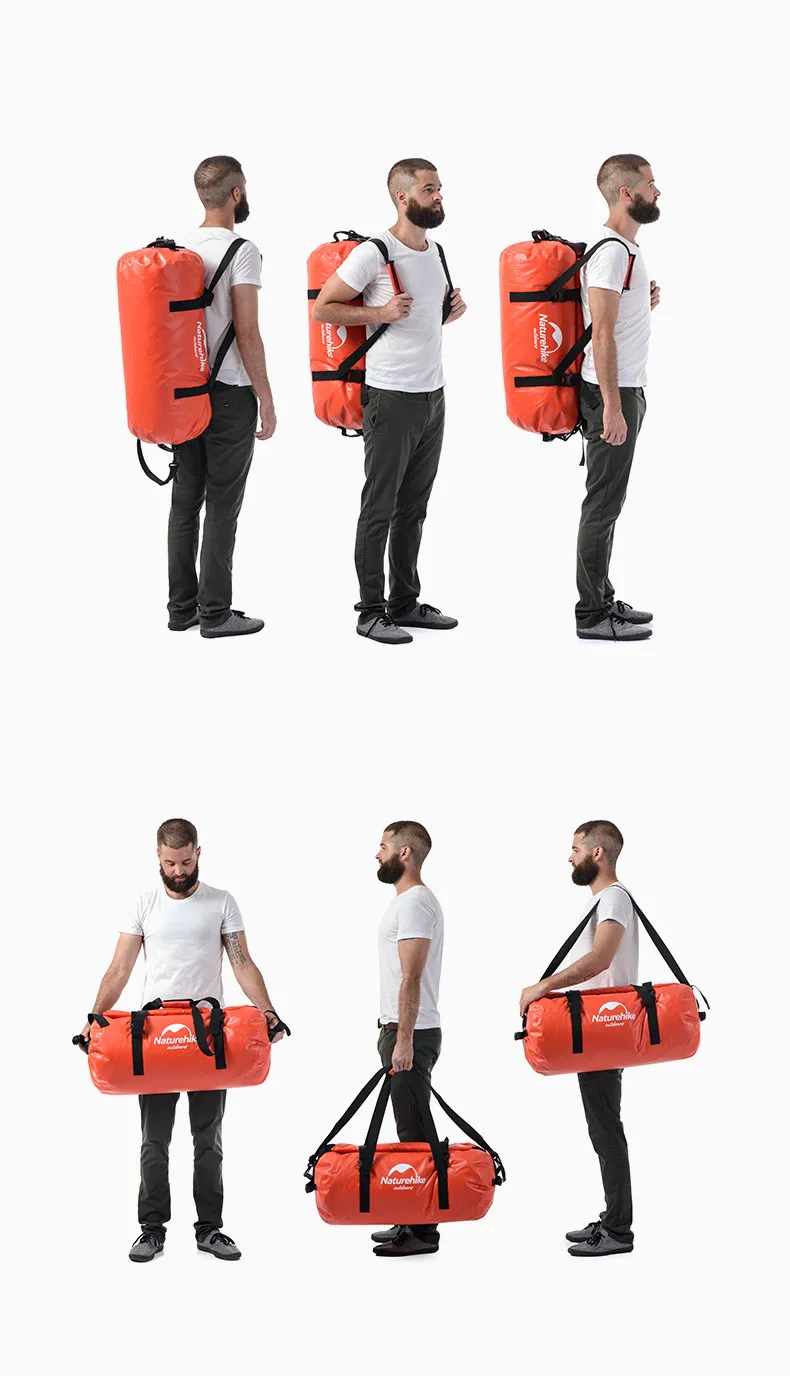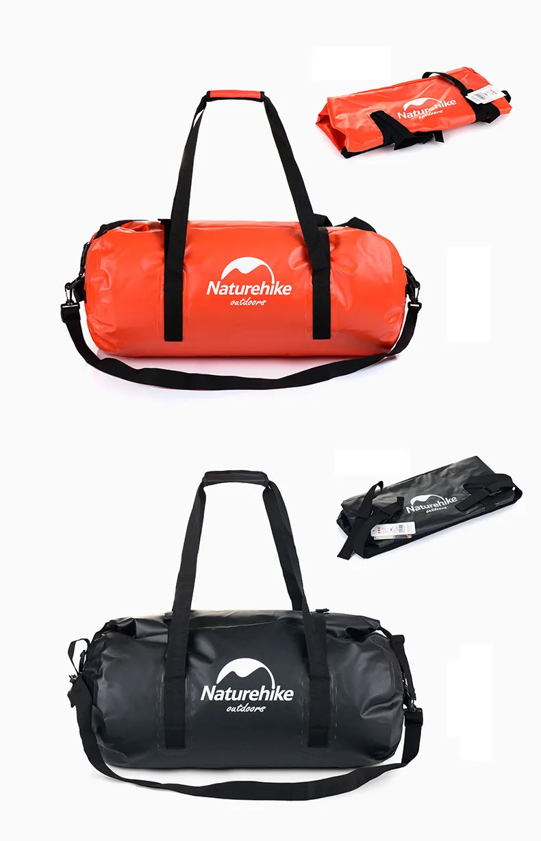 Shipping took about 2 weeks to Canada. The duffel seems well made. The fastenings and fabric weight suggest medium-duty use. I wouldn't throw this over barnacle-covered rocks but this will be perfect for canoe camping, paddleboard camping, and motorcycle touring. Long roll-down closure at the top that fastens to the ends of the duffel, not in the middle like chimney style drybags.