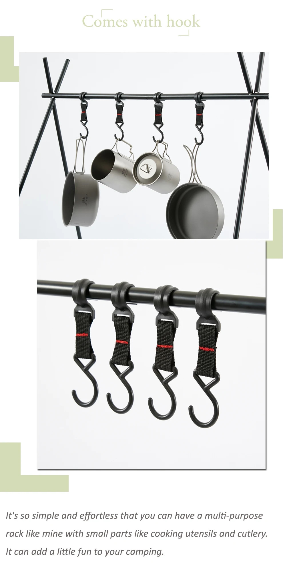 Uses: hanging camping utensils, etc., multi-purpose