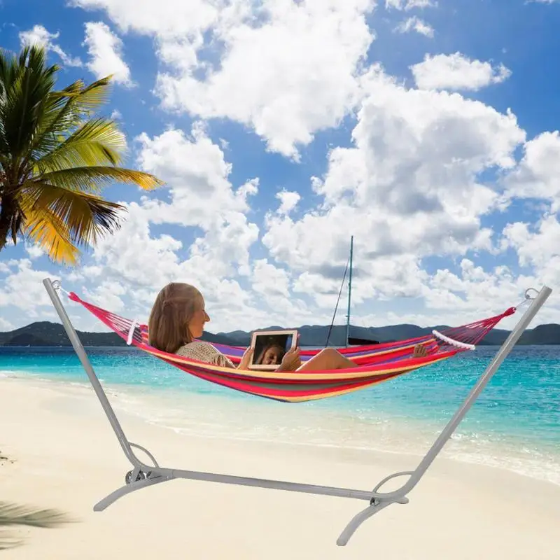 Single Hanger Hardwood Hanger Rod – Easy to fix, just use two tie-up ropes to fix the Hanger, and tie the rope to the tree or pole. Easy to carry and pack the same color bag. High-strength camping hammock-rope joints are specially braided according to physical rules. Each rope has the same weight and the hammock is strong enough. Ultra-lightweight travel hammock wrinkle-proof, comfortable appearance, comfortable feel. Multi-functional, durable and compact. It is very suitable for hiking, camping, mountain climbing, boating, tourism, picnic, backyard or garden and courtyard use. Durable rope,bright color stripe pattern and compact handbag. Hammocks are gorgeous, relaxed and energetic. They are the perfect combination of beach life. Lie in a hammock. It’s easy to clean with soap and water. The rope is very durable and in most cases has enough length to make the hammock easier to hang. Colored pull-rope bags are easy to carry to parks, camping, travel or fairness. To relax, hook up and down in your backyard. Relaxing companions in summer and autumn, The choice of portability is a huge benefit. The wooden hanger rod is bent and large enough to pull you when it is readjusted. Get out of the hammock. – When you use a hammock, it can also be used as an access handle. Because of the wooden hanger rod, the hammock will surely be more efficient and swing more continuously! Hardwood hangers help prevent rope tangling.Specifications: Material: Canvas Hanging Bed Material: Canvas Maximum load-bearing capacity: 75 (kg) The single curved wooden hammock length is 230cm/90.55″, cloth length is 190cm/74.8″ and width is 80cm/31.5″. It is durable and easy to carry. Hanger match with 2 ropes.Notes: 1. Due to the different monitor and light effect, the actual color of the item might be slightly different from the color showed on the pictures. Thank you! 2. Please allow 1-3cm measuring deviation due to manual measurement.