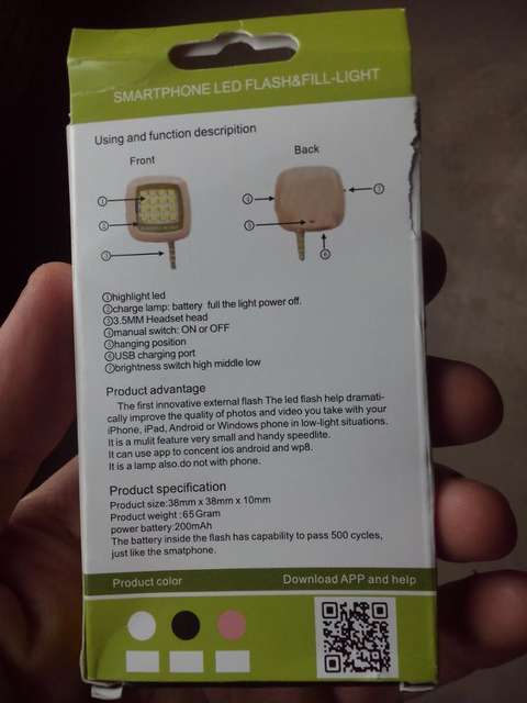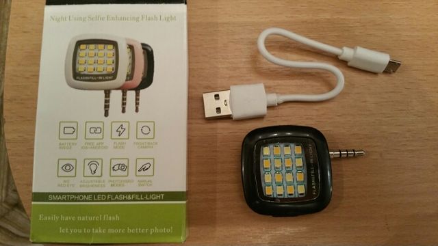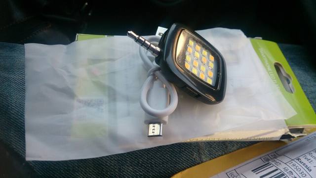 Товар пришел довольно быстро. Само устройство небольшого размера, около 3 см без джека. Светит не так уж и ярко, но вполне подходит как подсветка к корявыми китайским телефонам с недоработанный системой вспышки, что позволяет делать даже с дешёвых моделей телефонов довольно сносные снимки при недостатке освещения. На прилагаемых фото сам девайс и фотки сделанные практически без освещения.