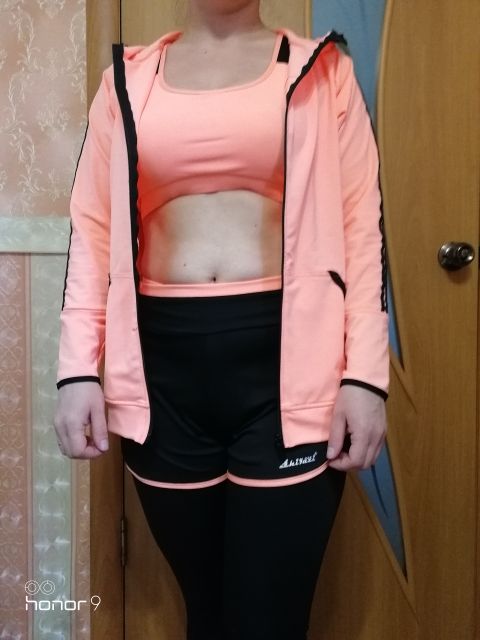 Этот костюм тот случай,когда вроде и есть косяки,но ты полностью удовлетворен и рука просто не поднимается поставить низкую оценку.Сначала я заказала размерМ,продавец написал уточнить мои параметры и порекомендовал L. Я долго сомневалась,но зря,все в целом подошло.Потом защита подходила к концу,продавец сам,без напоминания,написал что продлевает защиту.По самому комплекту:штаны мне немного коротковаты внизу немного топорщатся .Шорты мне немного большеваты.У кофты рукава мне тоже короткие.Цвет у майки отличается от основного цвета комплекта(на фото,наверное,плохо видно).Но в целом все супер!На эти мелочи даже внимание не обращаещь.Продавец отличный!Успешных продаж ему!