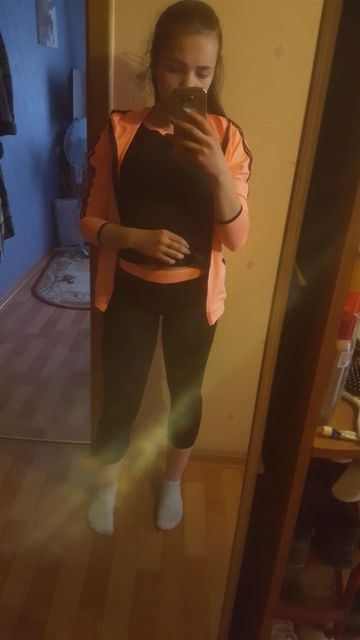 продавца рекомендую, хороший, внимательный. товар хорошего качества, сшит ровно, нитки не торчат. на рост 170/60 кг (98-70-98) заказала xl, немного коротковаты рукова и лосины. в ширину не жмёт. если наклониться или сесть, то на лосинах просвечивает зад.