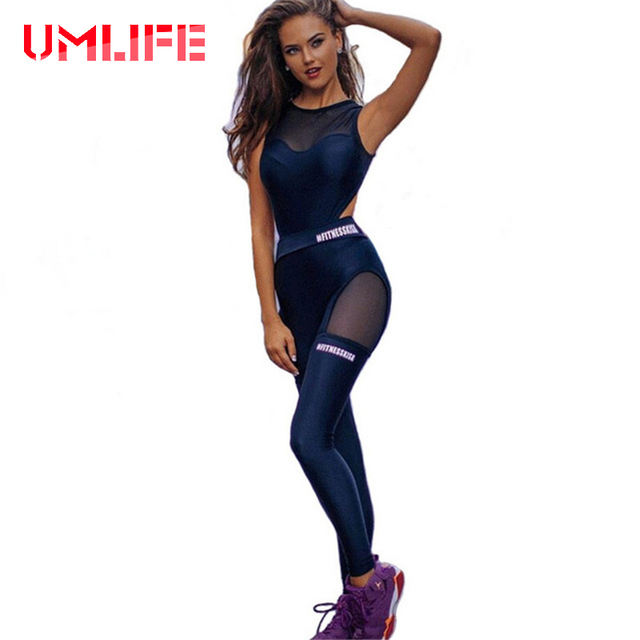 Women Fitness Yoga Set Sexy Mesh Patchwork Gym Running Jumpsuits