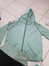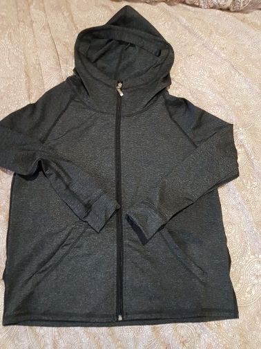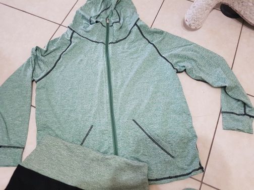 Качество нормальное,синтетиках,на 44-46 взяла xl ,свободна только кофта на замке,а остальное села как влитое )