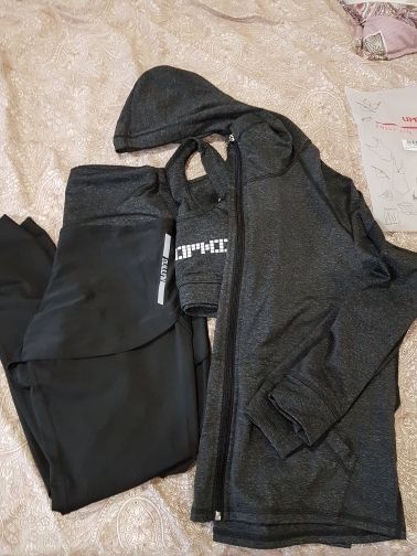 Заказала костюм и попала на праздники, отправка была осуществлена после выходных дней. Костюм синтетика, но мягкая, кожу не раздражает. Есть и замечания оверлочные швы торчат полоской нужно их завязывать, чтобы не разместились, в топе есть чашка-села хорошо . Ластовица только в шортах, лосины скроены без нее -мягким швом. Для интенсивных тренировок костюм думаю не подойдёт .Размер заказала по отзывам 85-62-90 Заказала М и на мне хорошо при росте 156 не больше, т.к лосины подойдут до 164 , но топ и куртка точно будут малы. Я довольна ведь за тройку заплатила 1016 руб