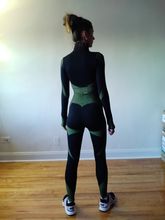 The quality of the suit is good, very well stretches, not thick. The figure of the leggings is tight, but the stomach does not tighten. When I opened, I thought the leggings will be short to me, but no stretch in length is very good. My height is 170.