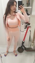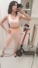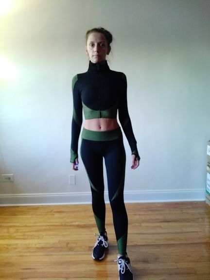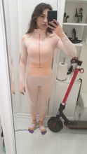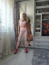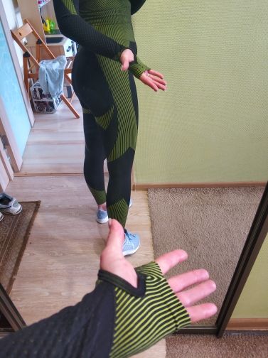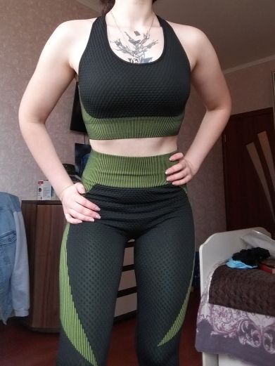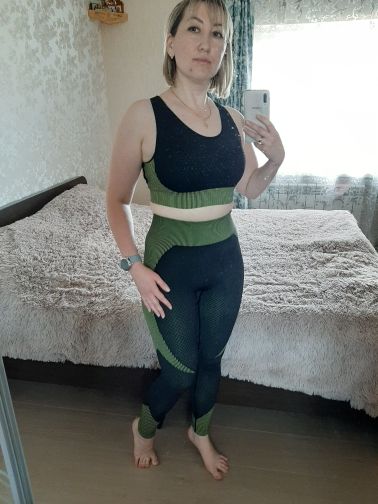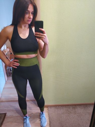 Came the goods quickly, ordered 28.06 received 11.07. The suit is super, but it shines through the underwear, maybe it was necessary to take more size I took S, maybe it was necessary to take M. I wanted to make morning runs in it, but now I do not know, I can only study at home))