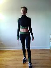 Bought sports suit size S for daughter height 134. Due to its compression and elasticity, it was perfect! Stock is, but it does not press and covers. The quality is perfect, sewn very neatly. Looks very expensive! The fabric is very dense, textured. We are glad to buy madly! Low bow to the store and the manufacturer!