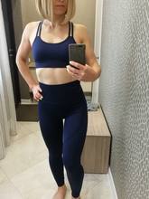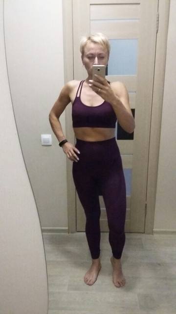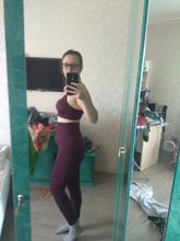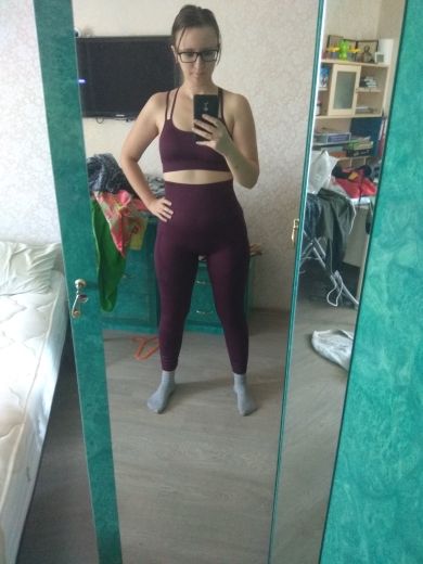 Color really liked, rich blue. Size ordered s, although the store advised m. On my height 157 cm leggings m would probably be long. The suit is super, the fit is comfortable, the waist is well pulled, the top is also comfortable does not press. The seams on the suit are even. On its parameters (ghthb) 82x69x90 cm s size is perfect. The seller is sociable, the order was sent quickly. The goods came in 21 days to novosibirsk. In general, the purchase is happy as an elephant)))